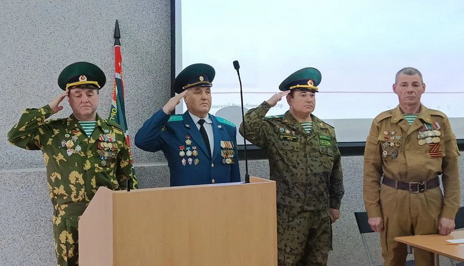 После исполнения гимнов Российской Федерации и Чувашской Республики ветераны-пограничники почтили минутой молчания память соратников, погибших в боевых действиях при охране и защите Родины, в ходе СВО и ушедших в мир иной.